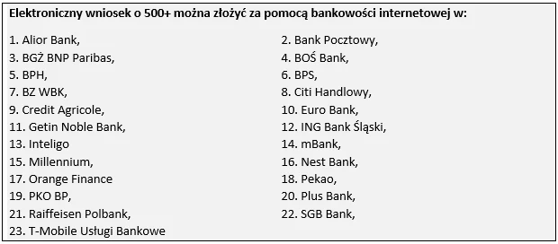 1 sierpnia br. urzędy gmin zaczną przyjmować papierowe wnioski o wypłaty świadczeń z programu 500 plus. Dokumenty w formie elektronicznej przyjmowane były już w lipcu, z czego skorzystało około miliona beneficjentów. Pomagała w tym większość banków komercyjnych, które w ramach bankowości internetowej udostępniają do wypełnienia wnioski o dopłaty. Jest to daleko idące ułatwienie, bo formalności można załatwić nie wychodząc z domu. Banki nie robią tego jednak charytatywnie - na konta beneficjentów programu wpływają co miesiąc około 2 mld zł - spora kwota, obracając którą banki mogą zarabiać.