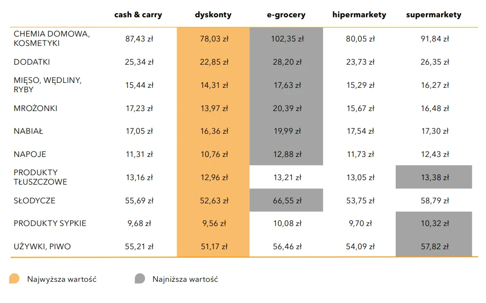 "Najtańsze zakupy oferują dyskonty, a najdroższe kanał e-grocery. Największy wzrost cen w skali roku (40 proc.) odnotowano w kategorii dodatki spożywcze, najmniej natomiast podrożały (5 proc.) produkty tłuszczowe." - czytamy w opracowaniu wyników.