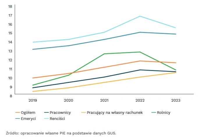 "Walka z ubóstwem energetycznym w Polsce i UE wymaga systematycznego monitorowania i analizy tego zjawiska w poszczególnych grupach społecznych i na poziomie różnorodnych wskaźników, takich jak m.in.: niemożność utrzymania odpowiedniej temperatury w domu; powszechność zaległości w opłacaniu rachunków za media lub wskaźnik zagrożenia ubóstwem, definiowany jako odsetek gospodarstw domowych, których dochód rozporządzalny wynosi mniej niż 60 proc. średniej krajowej" - zwraca uwagę Polski Instytut Ekonomiczny. Dość powiedzieć, że choć w latach 2019-2023 w Polsce najbardziej (o 2,1 pkt. proc.) wzrósł odsetek wydatków na energię w wydatkach ogółem wśród pracujących na własny rachunek. Jednocześnie w tym samym okresie stale najwyższy odsetek odnotowywano wśród emerytów (średnio 14 proc.).