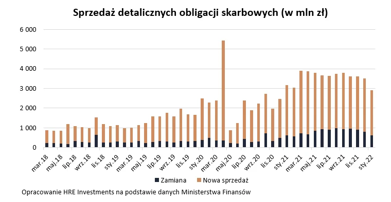 Przy tym trzeba mieć świadomość, że póki minister cieszy się dużą sprzedażą obligacji, nie ma powodu, aby podnosić oprocentowanie. To byłyby nawet szkodliwe dla samego ministra, który przecież przez 21 miesięcy (od maja 2020 r. do stycznia 2022 r.) sprzedawał najniżej oprocentowane papiery w historii. W tym czasie rodacy kupili je za 59 miliardów złotych. Jeśli inwestorzy ci zobaczyliby szybko rosnące oprocentowanie nowych emisji, mogliby dojść do wniosku, że bardziej opłaca im się zażądać zwrotu pieniędzy z posiadanych obligacji (przedterminowy wykup), aby ponownie zainwestować te pieniądze w "świeże" papiery emitowane na znacznie lepszych warunkach. Już dziś mamy do czynienia z tym fenomenem - przynajmniej w ograniczonym zakresie. Dotyczy to obligacji dwuletnich. Przecież dziś dają one obietnicę o połowę wyższego zarobku niż jeszcze w styczniu. Część inwestorów, którzy takie papiery kupili miesiąc temu, dochodzi dziś do wniosku, że opłaca im się zamienić je na te z nowej emisji.