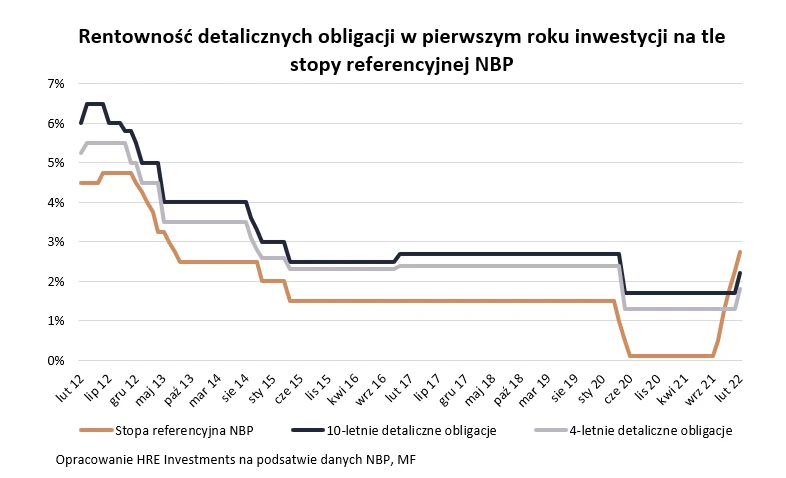 I gdyby tego wszystkiego było mało, to inwestorzy słusznie spodziewają się też dalszego poprawiania oferty detalicznych papierów wraz z kolejnymi podwyżkami stóp procentowych. Pomiędzy tymi wartościami historycznie istniało bardzo ścisłe połączenie. Jest to tyle ważne, że za kilka miesięcy - zgodnie z zapowiedziami prof. Glapińskiego - podstawowa stopa może dojść do 4 proc. Wtedy trudno sobie wyobrazić, aby popularne czteroletnie obligacje skarbowe dalej dawały w pierwszym roku zarobek na poziomie zaledwie 1,8 proc., a dziesięcioletnie papiery jedynie 2,2 proc. Patrząc na historię należałoby się spodziewać, że wspomniane stawki oprocentowania powinny wzrosnąć do co najmniej 4-4,5 proc. Problem w tym, że ostatnio ugruntowane przez lata powiązanie pomiędzy podstawową stopą procentową, a oprocentowaniem długoterminowych obligacji zostało zerwane. Z dzisiejszej perspektywy trudno wyobrazić sobie więc, że Minister Finansów będzie aż tak szczodry wobec rodaków powierzających mu swoje oszczędności.