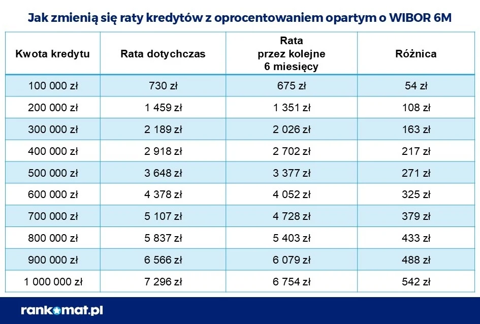 Najpóźniej obniżki stóp procentowych odczują kredytobiorcy, których rata ustalana jest na podstawie wskaźnik WIBOR 6M, a aktualizacja wskaźnika nastąpiła w ostatnich dniach czy tygodniach: