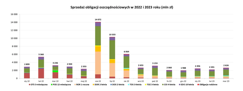 - Sprzedaż obligacji oszczędnościowych w marcu sięgnęła 2,6 mld zł