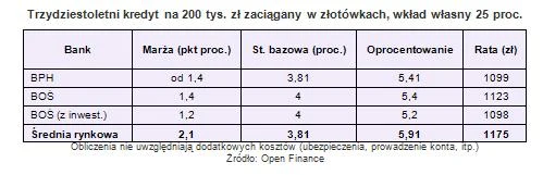 Na promocję kredytów zaciąganych w złotówkach zdecydował się również Bank BPH, który do tej pory oferował jedne z najmniej atrakcyjnych warunków na rynku. Obniżka wyniosła 2,6 pkt proc., więc kredyt z 25-proc. wkładem własnym po założeniu konta ma marżę w wysokości od 1,4 pkt proc. Oprócz wysokości wkładu własnego, bank uzależnia warunki cenowe również od historii kredytowej, więc dla tego samego kredytu marża może sięgnąć maksymalnie 3,2 pkt proc. Pokazuje to zatem, że oferta jest atrakcyjna, ale tylko dla klientów z nieskazitelną historią kredytową.