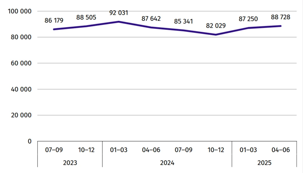 Liczba rejestracji przedsiębiorstw w 2 kwartale 2025 r. wyniosła 88 728 wobec 87 642 w analogicznym okresie roku poprzedniego. GUS informuje, że spośród wszystkich rejestracji, blisko trzy czwarte nastąpiło w czterech rodzajach działalności, tj. usługach (24,9 proc.), budownictwie (19,6 proc.), tzw. pozostałych sekcjach (17,5 proc.) oraz handlu; naprawie pojazdów samochodowych (12,8 proc.).