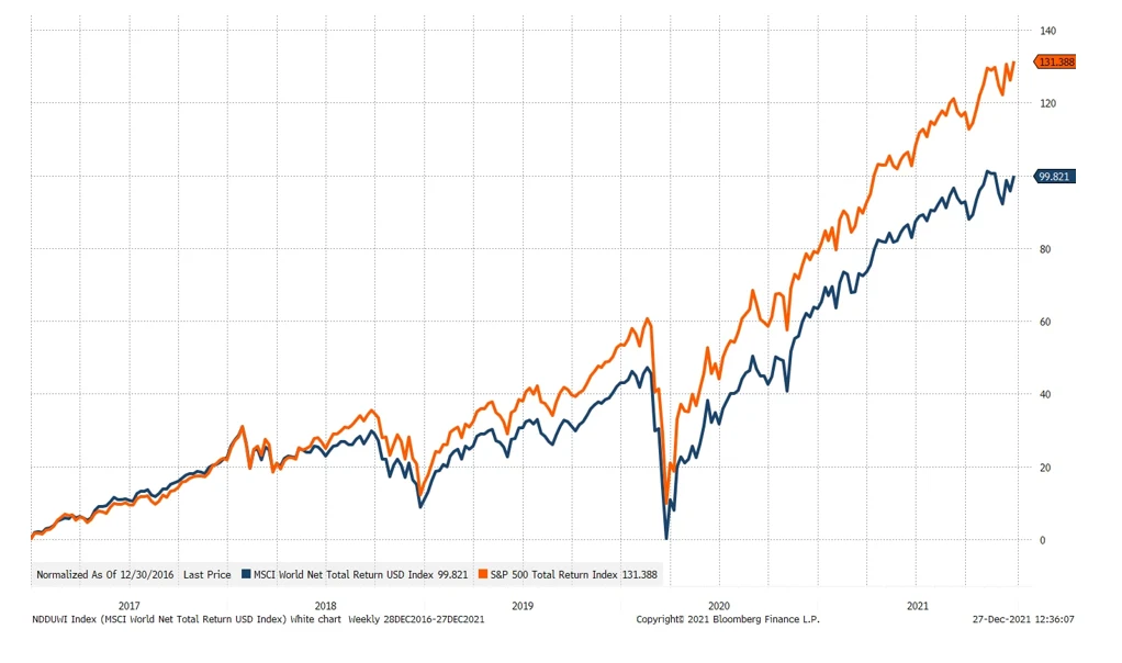 Dlaczego ktokolwiek miałby inwestować w obligacje, kiedy jego kapitał się kurczy w ujęciu realnym? Równie dobrze można by przerzucić się na akcje pomimo historycznie wysokich cen i wycen, ponieważ być może w ten sposób udałoby się przynajmniej ocalić kapitał przed destrukcyjnym wpływem inflacji. Innymi słowy, podejście TINA (ang. there is no alternative - "nie ma alternatywnego rozwiązania") jest nadal żywe na rynkach finansowych w miarę zbliżania się 2022 r., ponieważ - jak zauważyli zarówno John Maynard Keynes, jak i Warren Buffett, choć w różnym kontekście - inflacja jest wrogiem gospodarki kapitalistycznej i inwestorów.