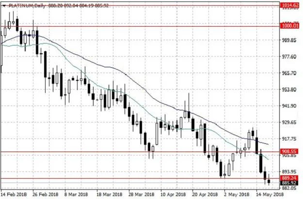 W rezultacie, notowania platyny zeszły w tym tygodniu poniżej poziomu 900 USD za uncję i obecnie poruszają się w okolicach 885-890 USD za uncję, czyli na najniższym poziomie od grudnia poprzedniego roku. Z technicznego punktu widzenia, najbliższym ważnym rejonem wsparcia będą okolice 877 USD i 870 USD za uncję.