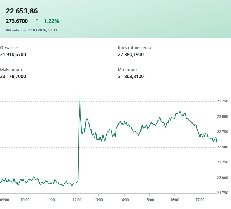 Także Konrad Ryczko, analityk DM BOŚ podkreśla, że rynek pozostaje pod wpływem wpisów Trumpa. "Widoczna jest jednak lekka konsternacja z uwagi na sygnały z irańskich mediów (brak rozmów) czy dalsze ataki Izraela" - dodaje ekspert. Tak czy inaczej, w poniedziałek również Wall Street na otwarciu zaświeciło jaskrawą zielenią - amerykańskie indeksy na otwarciu rosły o ponad 1 proc.