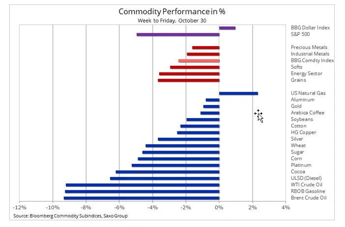 W efekcie ostatnich wydarzeń w najbliższej przyszłości należy się spodziewać, że inwestorzy będą bardziej przejmować się ochroną kapitału niż zyskami. W tym kontekście naszym zdaniem największe ryzyko wiąże się z tymi surowcami, w przypadku których inwestorzy spekulacyjni dysponują dużymi, przeważnie długimi pozycjami, ponieważ odwracają się od prognozowanych długoterminowych wzrostów na rzecz krótkoterminowego, bardziej defensywnego podejścia. W efekcie największe straty odnotowują uprawy i paliwo, natomiast metale - zarówno szlachetne, jak i przemysłowe - dokonały gwałtownego zwrotu.