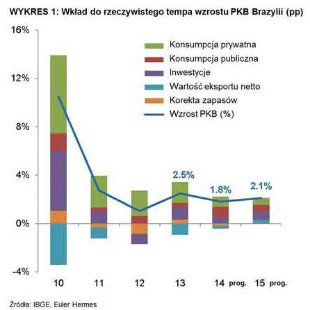 Fakt bycia gospodarzem wielkich imprez sportowych nie przyniesie wymiernych korzyści brazylijskiej gospodarce. Inwestycje związane z organizacją Piłkarskich Mistrzostw Świata 2014 oraz Igrzysk Olimpijskich 2016 nie zapobiegły gwałtownemu zwolnieniu brazylijskiej gospodarki na przestrzeni ostatnich trzech lat. Rzeczywisty PKB ponownie spadł w 1 kwartale (+0.2pp w porównaniu z +0.4% w 4 kwartale 2013, +1.9% w roku 2014 w porównaniu z +2.2% w 4 kwartale 2013