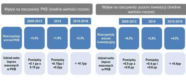 - Organizacja największych imprez sportowych przynosi co najwyżej efekt promocyjny - bieżąco wyższe wydatki inwestycyjne zazwyczaj odciskają swoje negatywne piętno w kolejnych latach.