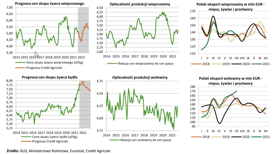 Ponownego wzrostu cen oczekujemy dopiero w I kw. 2022 r. czemu sprzyjać będzie obserwowany obecnie spadek pogłowia świń w UE ze względu na niską opłacalnośc produkcji, a także dalszy wzrost popytu wewnętrznego w UE, głównie ze strony kanału HoReCa, wraz z wygasaniem pandemii. Głównym czynnikiem ryzyka dla naszego scenariusza jest rozprzestrzenianie się ASF oraz dalszy przebieg pandemii.