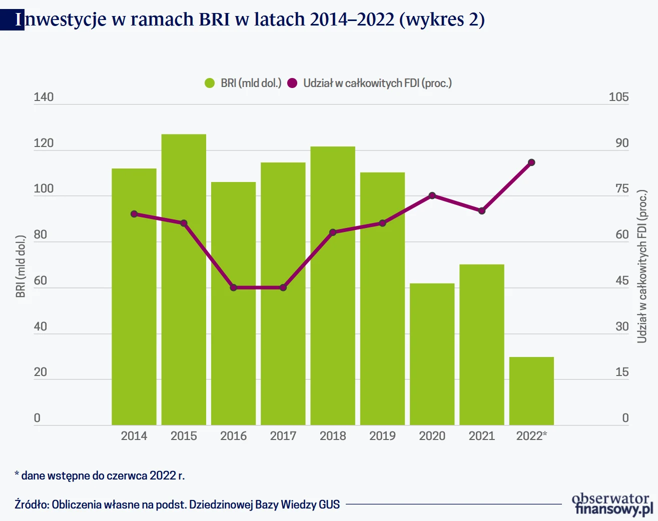 Zaangażowanie i inwestycyjne, i pożyczkowe w ramach BRI wahało się w zależności od roku. Zgodnie z wyliczeniami "Harvard Business Review", do 2020 r. Chiny udzieliły bezpośrednich pożyczek i kredytów handlowych w wysokości 1,5 bln dol. ponad 150 krajom, stając się wiodącym kredytodawcą na świecie (prześcigając tym samym Bank Światowy i Międzynarodowy Fundusz Walutowy). W I połowie 2022 r. inwestycje pozostały stabilne i utrzymały się na poziomie 29,8 mld dol. (w 2021 r. za I półrocze wynosiły 29,6 mld dol., wykres 2). Tym samym skumulowane inwestycje osiągnęły pułap ponad 885 mld dol. (bez uwzględniania przedsięwzięć problematycznych). W sumie przeprowadzono 1780 projektów. Więcej inwestowano w krajach BRI niż poza tym obszarem, ale w mniejszej liczbie branż niż w latach poprzednich. Tempo wzrostu inwestycji do krajów objętych BRI w 2021 r. było także niższe od dynamiki globalnych inwestycji trafiających do tych państw.