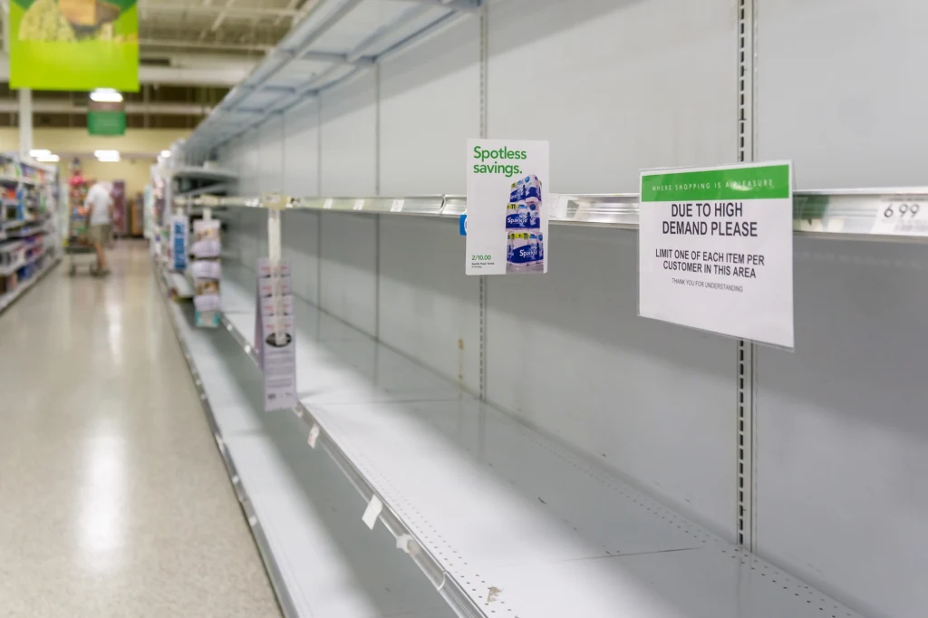 Odkąd na Wschodnim Wybrzeżu i w Zatoce Meksykańskiej Stanów Zjednoczonych stanęło 36 portów, media społecznościowe obiegają doniesienia o brakach w sklepach. Pokazywane są puste półki. Podobnie jak podczas pandemii COVID-19, największe braki w zaopatrzeniu dotyczą papieru toaletowego. Brakuje też, chociaż w mniejszym stopniu, papierowych ręczników.