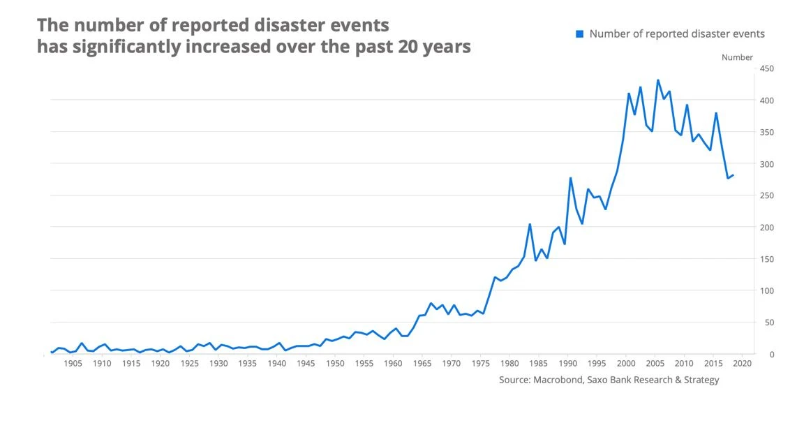 Według danych statystycznych opublikowanych przez portal "Our World in Data", w ciągu ostatnich 20 lat rocznie miało miejsce 335 klęsk żywiołowych, czyli występowały one dwukrotnie częściej niż w latach 1985-1995. Równocześnie ich koszt ekonomiczny szybko rośnie.