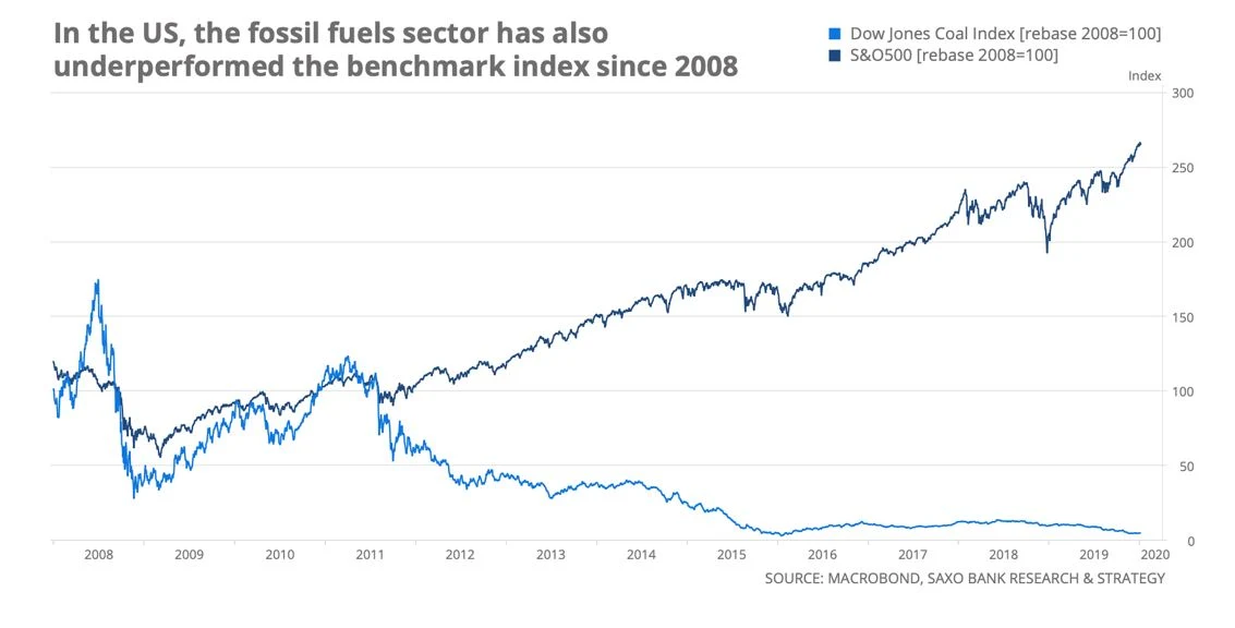 Świadomość zmian klimatu prowadzi do powszechnej akceptacji bardziej aktywnej polityki fiskalnej i pieniężnej. Szybkość adaptacji nie jest jeszcze pewna, jednak widać już oddziaływanie tego podejścia na zachowanie inwestorów. W bieżącym cyklu koniunkturalnym sektory paliw kopalnych poniosły istotne straty. W kontekście Europy, od 2008 r. indeks Europe STOXX 600 Oil & Gas poszedł w dół o 25 proc. w porównaniu ze wzrostem o 14 proc. indeksu STOXX 600. Spadek ten jest jeszcze większy w Stanach Zjednoczonych. W analogicznym okresie indeks Dow Jones Coal poszedł w dół o 95 proc., podczas gdy indeks benchmarkowy zyskał aż 120 proc. Naturalnie, nie da się tłumaczyć całej tej ewolucji rozwojem zielonego kapitalizmu - odegrał on jednak kluczową rolę w tym procesie.