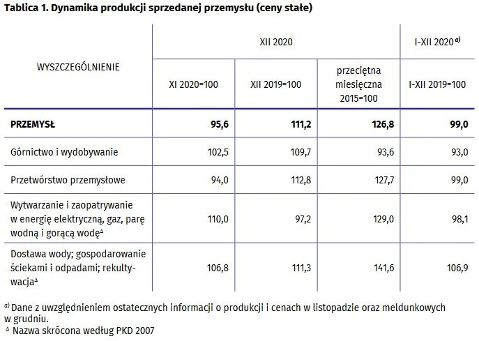 Poprawę produkcji odnotowano w 28 spośród 34 działów przemysłu. Listopad był pod tym względem mniej udany, bo sytuacja polepszyła się wówczas w 24 działach. Jednak ogólna suma produkcji w świątecznym grudniu była o 4,4 proc. mniejsza niż w listopadzie.