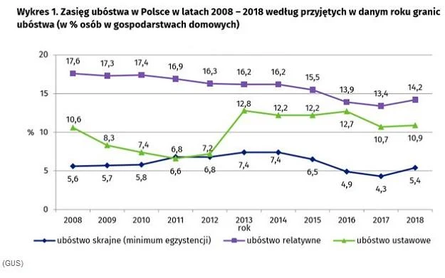 Główny Urząd Statystyczny opublikował wskaźniki dot. zasięgu ubóstwa skrajnego, relatywnego oraz ustawowego. Po 3 latach spadków w pierwszych dwóch kategoriach i roku w ostatniej, w 2018 r. we wszystkich przypadkach odnotowano wzrosty: