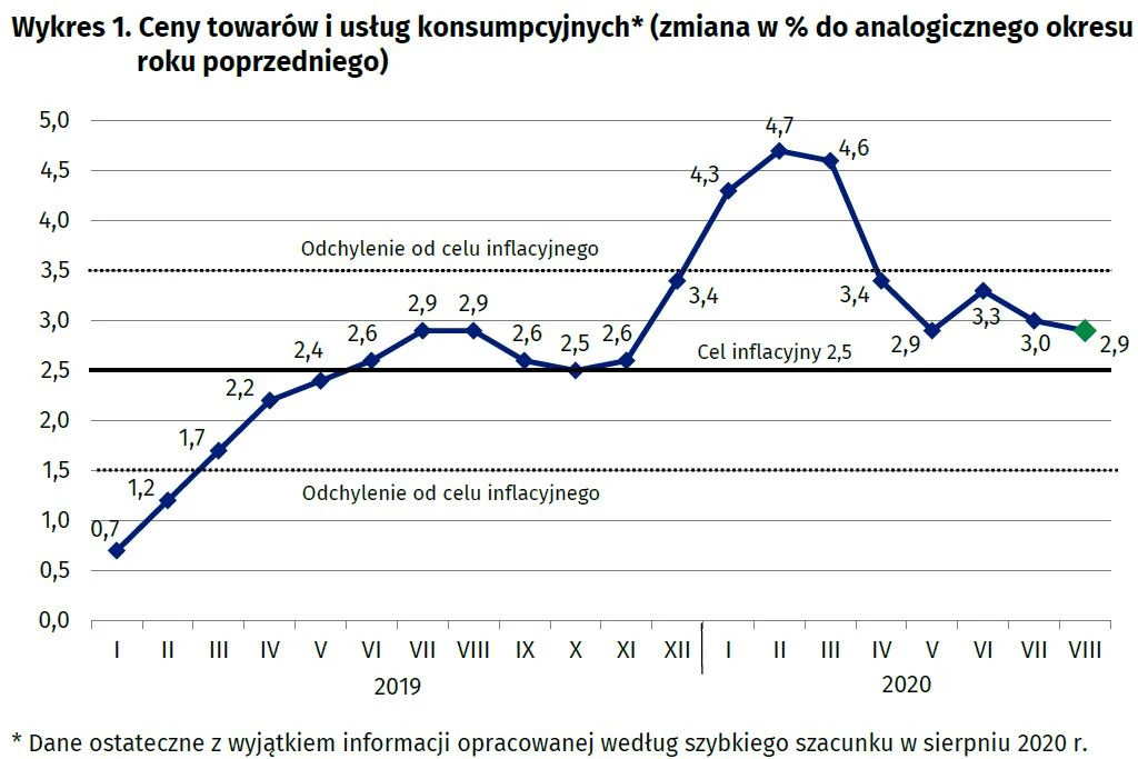 "Podtrzymujemy opinię, że inflacja będzie dalej się obniżać do poniżej 2,5 proc. na koniec 2020 i sporo poniżej 2,0 proc. w 2021" - podali.