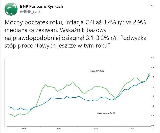 Grzegorz Maliszewski, główny ekonomista Banku Millennium podkreśla, że w aktualny pozostaje scenariusz hamowania inflacji w drugiej połowie roku, ale "może on następować wolniej niż do tej pory się spodziewaliśmy". - Być może część podwyżek została też przyspieszona - zastanawia się.
