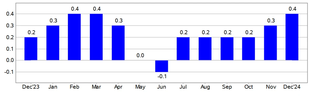 Jak podało BLS, ceny energii wzrosły w grudniu o 2,6 procent, ceny paliw o 4,4 procent w ciągu miesiąca. Indeks cen żywności również wzrósł w grudniu o 0,3 procent.