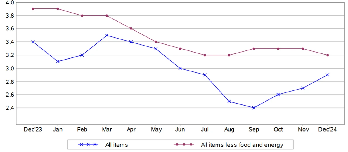 Rynki oczekiwały wzrostu inflacji w USA. "Inflacja CPI w USA w grudniu wg nas i konsensusu wzrosła do 2,9 proc. r/r z 2,7 proc. r/r w listopadzie, przy stabilizacji inflacji bazowej na poziomie 3,3 proc. r/r." - przypomnieli w porannym komentarzu (w środę przed publikacją danych BLS) analitycy PKO BP.