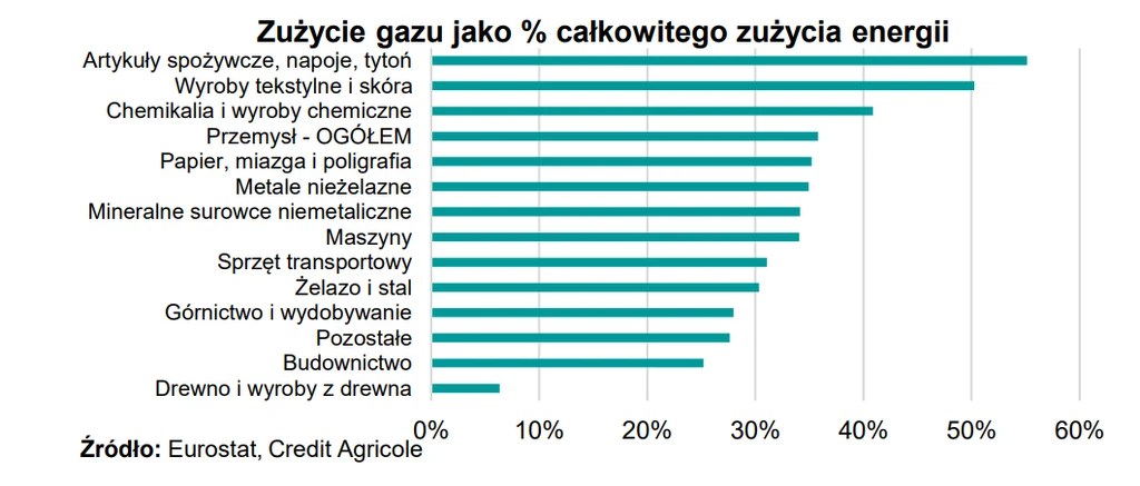 Po konsultacji z ekspertami branżowymi analitycy Credit Agricole wyselekcjonowali kategorie niemieckiego przetwórstwa szczególnie wrażliwe na "szok gazowy".