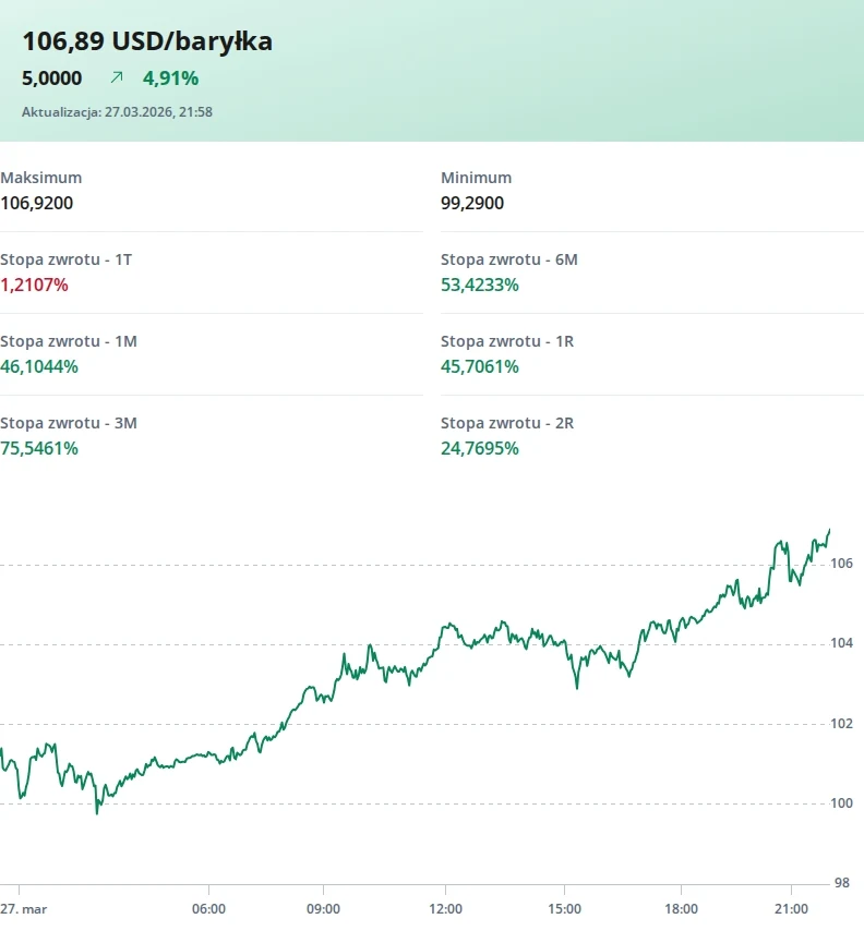 W sobotę mijają cztery tygodnie od ataku USA i Izraela na Iran. W kolejnych dniach po wybuchu wojny notowania ropy naftowej na świecie, jak również paliw gotowych, zaczęły zwyżkować. Była to reakcja na blokadę cieśniny Ormuz, strategicznej dla transportu morskiego surowców energetycznych z tego regionu, a także ataki na infrastrukturę wydobywczą i rafineryjną.
