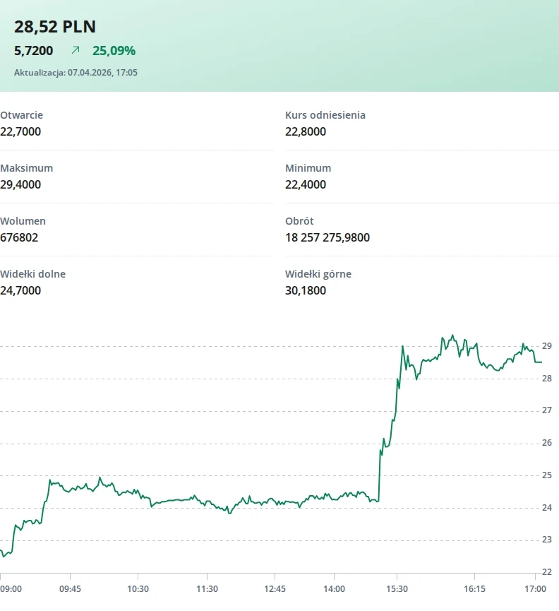 Po ogłoszeniu tej informacji kurs akcji wystrzelił o ponad 25 proc.