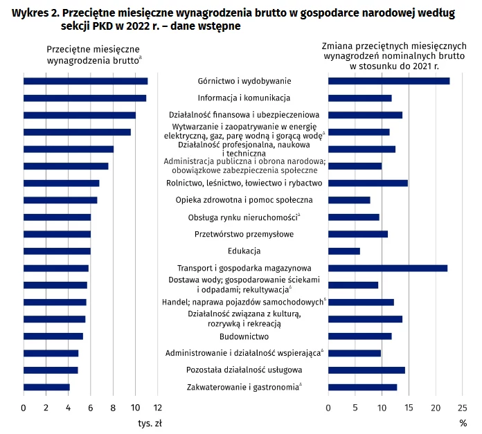 Jedyną inną kategorią, gdzie podwyżki przegoniły inflację, jest rolnictwo, leśnictwo, łowiectwo i rybactwo. Tam zarobki w 2022 roku wzrosły o 14,8 proc., a wyniosły przeciętnie blisko 6,8 tys.