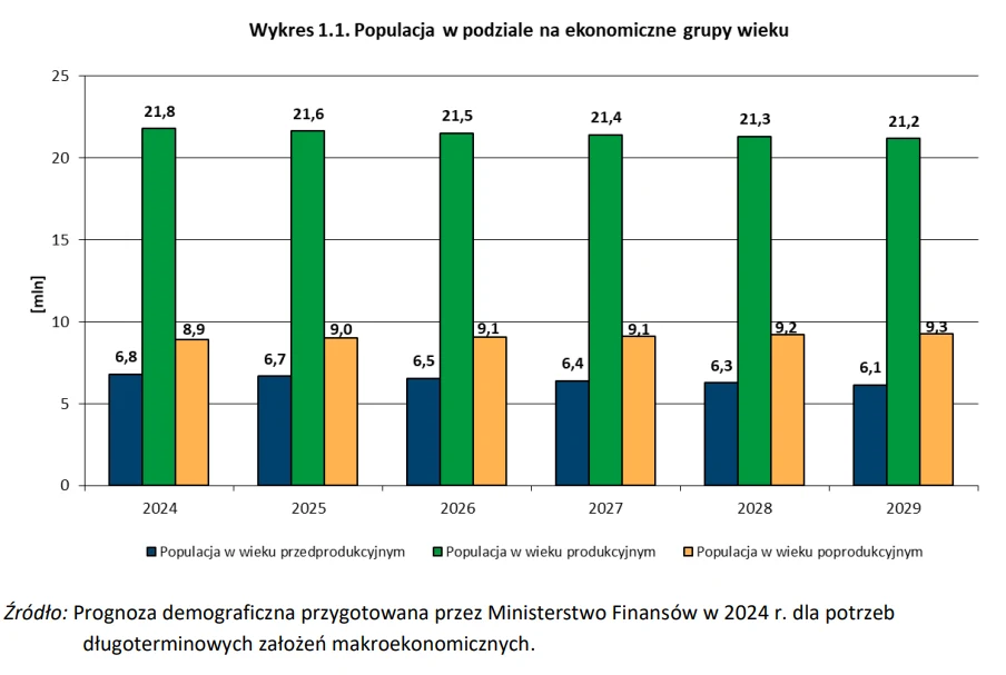 Prognoza ZUS wskazuje, że w 2029 roku liczba ubezpieczonych zmniejszy się o 236 tys. (1,4 proc.) w stosunku do roku 2025. Wzrośnie za to liczba emerytów; zmaleje z kolei liczba osób pobierających renty z tytułu niezdolności do pracy finansowane z FUS.