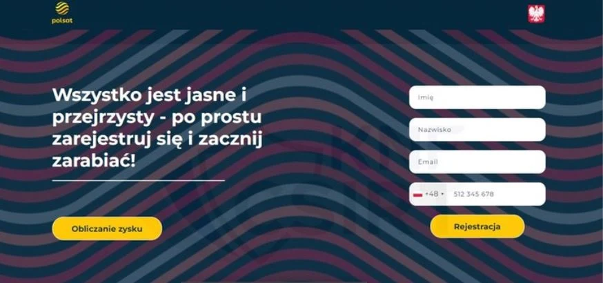 Na stronie widoczne jest logo Polsatu oraz godło Polski, a także fałszywy certyfikat wystawiony na Cyfrowy Polsat. Cyberprzestępcy proszą o podanie podstawowych danych: imienia, nazwiska, numeru telefonu oraz maila.