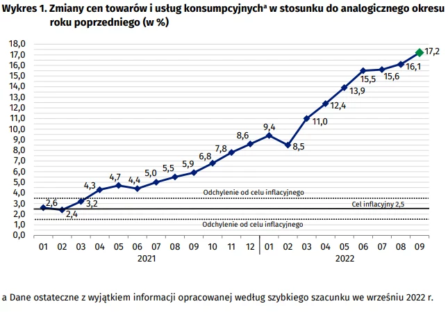 Nie brakowało jednak opinii, że wrześniowy odczyt przyniesie nam wskaźnik CPI na poziomie nawet 17 proc. Dzisiejsze (piątkowe) dane (podkreślmy: to dane wstępne - tzw. szybki szacunek) pokazują większą od prognoz dynamikę wzrostu cen.