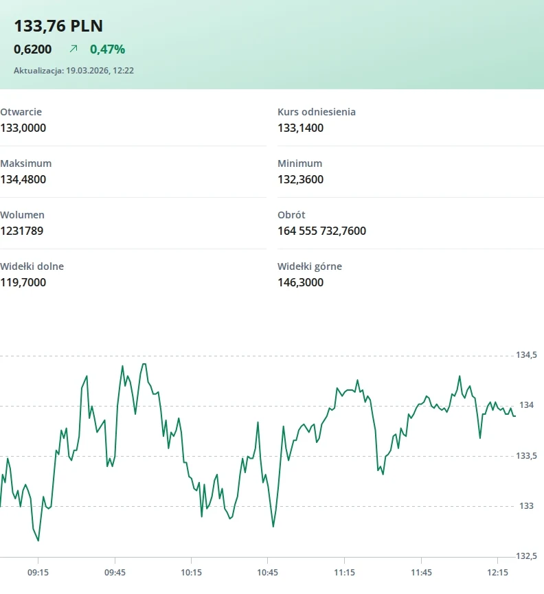 Po godzinie 12:30 cena akcji wynosiła ponad 133 zł.