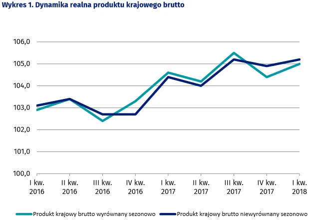 Dane przekazane przez GUS świadczą o dobrej kondycji polskiej gospodarki. Wzrost PKB w I kwartale 2018 (5,2 proc. rok do roku) był wyższy niż wzrost z IV kwartału 2017 (4,9 proc.).