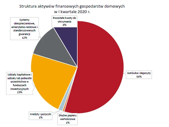Można się spodziewać, że w najbliższych kwartałach dalej będzie rosnąć wartość gotówki oraz depozytów, co oczywiście przełoży się dalszy wzrost udziału tej pozycji w całości aktywów. Jeśli tak będzie, to możemy wyprzedzić Węgry i staniemy się pod tym względem państwem o najwyższej wartości zgromadzonej gotówki w Unii Europejskiej w odniesieniu do PKB. Drugim najważniejszym składnikiem aktywów gospodarstw domowych są udziały kapitałowe i jednostki uczestnictwa w funduszach inwestycyjnych - ich udział w całości aktywów wyniósł około 23 proc.
