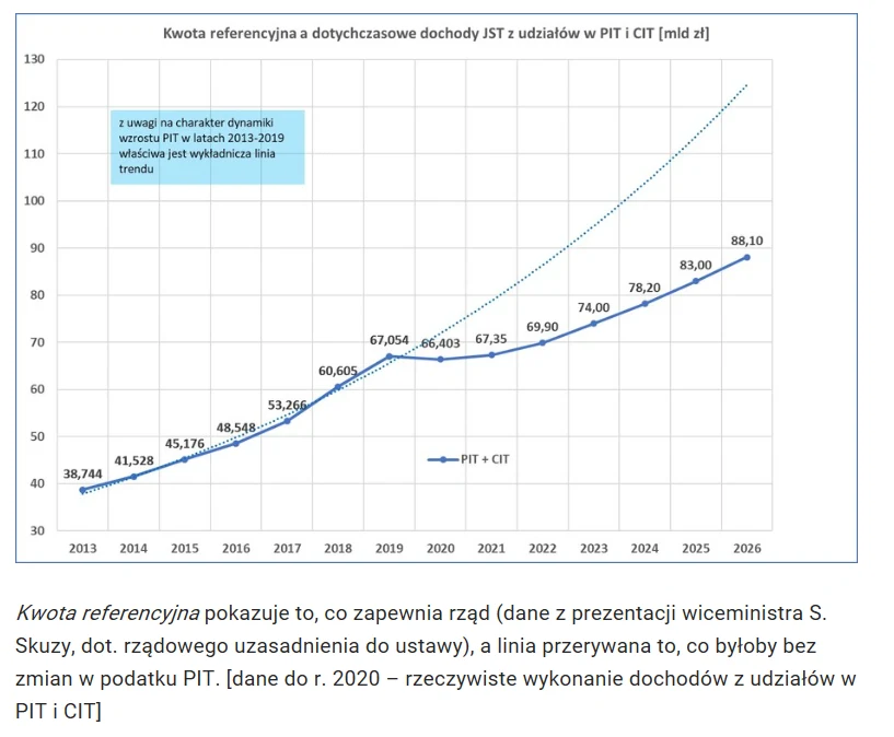Według publikowanych już wyliczeń, z tytułu zmian podatkowych, przede wszystkim podniesienia kwoty wolnej, dochody samorządów spadną w ciągu 10 lat o 145 mld zł. Związek Miast Polskich wyliczył jeszcze niedawno, że razem z poprzednimi zmianami w podatku PIT (w latach 2019 i 2020) samorządy stracą do 2031 roku aż 187 mld zł. Rząd przygotował mechanizm kompensacyjny i przekonuje, że samorządy nie stracą, jednak samorządowcy i tak przewidują, że ich wpływy będą niższe niż gdyby nie było zmian związanych z Polskim Ładem.