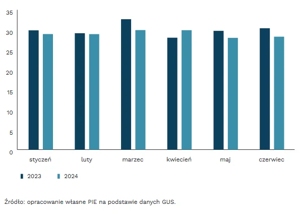 W omawianym okresie (I poł. 2023- I poł. 2024) nastąpił spadek wartości polskiego eksportu do Niemiec o 7 proc. (w euro). Stagnacja w niemieckiej gospodarce wpływa negatywnie na polski PKB z racji rozlicznych powiązań handlowych i łańcuchów dostaw.