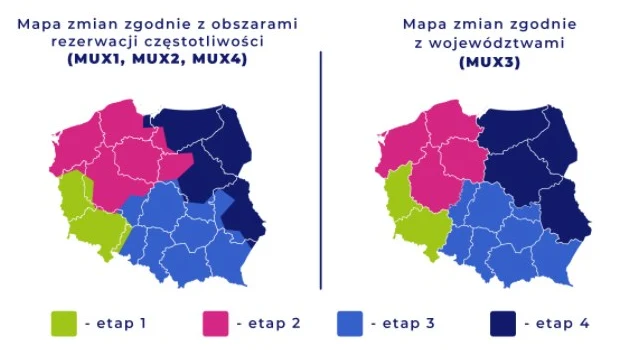 Nowy standard nadawania NTC będzie wprowadzany na terenie całego kraju sukcesywnie, od 28 marca do 27 czerwca 2022 r. W pierwszej kolejności zmiany obejmą województwa: dolnośląskie i lubuskie.