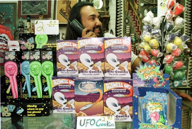 Od tamtej pory UFO w Nowym Meksyku i Nevadzie pojawia się na nieboskłonie niemal codziennie, a tysiące turystów rokrocznie zamiast ruletki w Las Vegas wybiera "spotkanie trzeciego stopnia". Zapewne właśnie dzięki temu mieszkańcom Roswell zielony kolor ufoludka kojarzy się z dolarami.