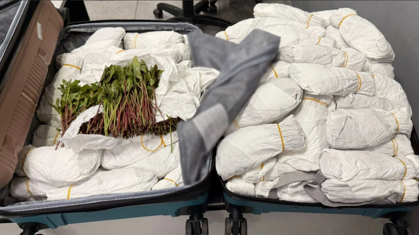 Obraz ze skanera wskazywał na obecność podejrzanej substancji. Po otworzeniu bagażu funkcjonariusze znaleźli 245 paczek z zabezpieczonymi roślinami o zielonych, lancetowatych liściach i bordowych łodygach o łącznej wadze 49 kg.