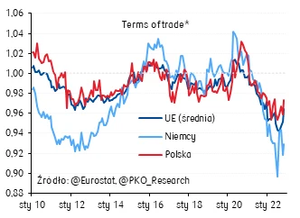 Jak tłumaczy: - W przypadku Polski zróżnicowana struktura gospodarki ograniczała skalę pogorszenia "terms of trade". Wraz z normalizacją cen energii wskaźnik ten (podobnie jak średnio w UE) powrócił pod koniec 2022 w okolice notowane przed wojną.
