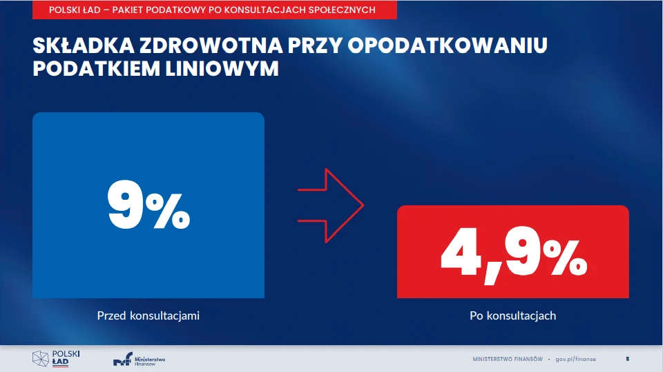 We wtorek Ministerstwo Finansów poinformowało o zmianach, które zostaną wprowadzone w projekcie ustawy podatkowej w ramach Polskiego Ładu. Tak jak proponowano w pierwotnym projekcie, wejdą dwie duże zmiany bez korekt - podniesienie kwoty wolnej od podatku do 30 tys. zł oraz drugiego progu podatkowego do 120 tys. zł (oba parametry nie były zmieniane od wielu lat). Są natomiast zmiany w składce zdrowotnej - najbardziej kontrowersyjnym elemencie projektu. W nowej wersji obniżono w stosunku do pierwotnej składkę zdrowotną dla przedsiębiorców, ale tylko dla rozliczających się liniowo, ryczałtowców oraz na karcie podatkowej.