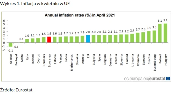 Bankier.pl, Eurostat: inflacja w Polsce powyżej 5 proc. Wyższa tylko na Węgrzech, dostępne pod adresem: https://www.bankier.pl/wiadomosc/Eurostat-inflacja-w-Polsce-w-kwietniu-2021-r-powyzej-5-proc-8115788.html.