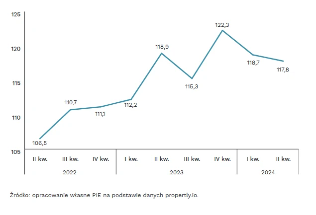 PIE zwraca jeszcze uwagę na jedną istotną rzecz. W 10 największych polskich miastach mediana cen wynajmu powierzchni biurowej w II kwartale 2024 r. jest o 18 proc. wyższa niż w I kwartale 2022 r. Jednak w ujęciu rocznym oznacza to spadek o 1 pkt. proc. - wzrosty miały miejsce głównie w 2022 r. i w I połowie 2023 r., w czasach wysokiej inflacji.