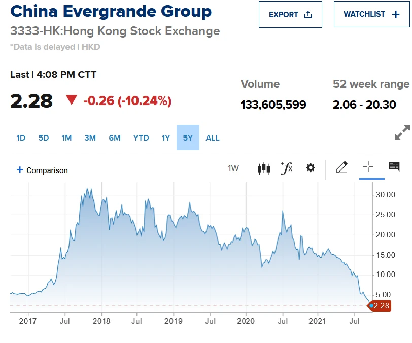 Fitch ocenia, że spółka musi spłacić odsetki obligacyjne na poziomie 129 milionów dolarów w samym wrześniu, 850 mln dolarów do końca tego roku, natomiast do końca przyszłego roku spółka będzie musiała wykupić obligacje warte 7,4 mld dolarów. Problemy Evergrande doprowadziły do znacznego wzrostu kosztów zadłużenia dla mniej bezpiecznych spółek w Chinach, co znacznie zwiększa ryzyko ich upadku.