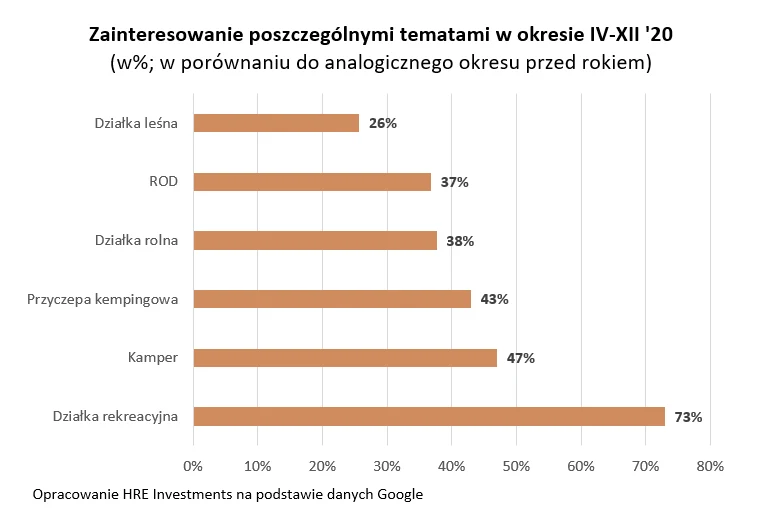 Dane zebrane przez HRE Investments sugerują, że w każdej z tych kategorii zainteresowanie w czasie epidemii było w 2020 roku o co najmniej kilkadziesiąt procent wyższe niż w analogicznym okresie rok wcześniej.