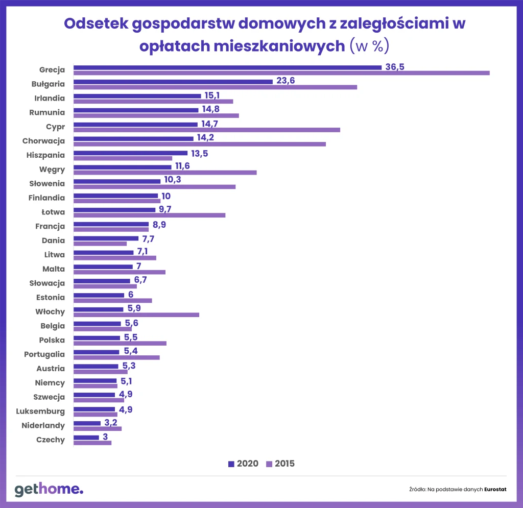 - Mankamentem tego źródła informacji jest to, że niektóre statystyki są w nim publikowane z pewnym opóźnieniem. Z drugiej strony interesujące nas zmiany nie zachodzą na tyle szybko, aby to miało istotne znaczenie. Istotne jest to, czy od 2015 r. warunki mieszkaniowe w naszym kraju poprawiły się, czy pogorszyły, oraz jak wypadamy na tle 27 krajów UE - mówi ekspert portalu GetHome.pl Marek Wielgo, który do porównań wykorzystał siedem opublikowanych właśnie przez Eurostat wskaźników za 2020 r.