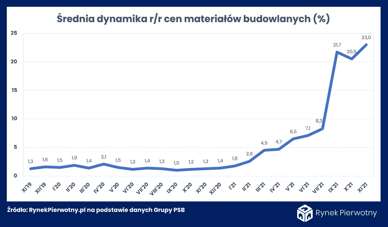 Zapoczątkowane przed blisko rokiem ostre przyspieszenie dynamiki wzrostów cen materiałów budowlanych niestety wciąż ma się bardzo dobrze. O ile jeszcze w tegorocznym styczniu ich stawki szły w górę w średnim tempie 1,8 proc. w relacji rdr, to w listopadzie parametr ten poszybował do blisko 23 proc. Oznacza to kolejny spektakularny rekord oraz sygnał utrzymania tendencji wzrostowej w nadchodzącym dużymi krokami nowym roku. Pytanie, czy wszelkie nadzieje na zakończenie windowania cen przedmiotowej grupy towarów należy definitywnie porzucić?