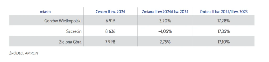 W Polsce zachodniej, przykładowo w Gorzowie w ciągu kwartału ceny wzrosły o ponad 3 proc., w Zielonej Górze o 2,8 proc., ale w Szczecinie potaniały o 1 proc. W skali rocznej w tych miastach był wzrost o około 17 proc.